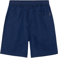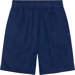 Amal is a pair of dark blue shorts constructed in a lovely, airy linen/cotton quality. The shorts have elastic and a drawstring at the waist, side pockets and a single pocket on the back. They are in a loose fit.