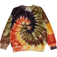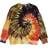 Multi-coloured sweatshirt in a tie-dye print in shades of orange, brown and purple. This sweatshirt is in 100% soft cotton velour and has a round neck with a rib edge, raglan sleeves with rib and rib at the bottom. The sweatshirt is in a regular fit. Wear it with the Alvar joggers in the same print for the perfect set.
