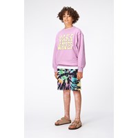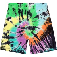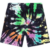 Amil is a pair or sweat shorts in a multi-coloured tie-dye print in 100% organic cotton. The print is a classic tie-dye swirl in vibrant colours on a black background. The shorts end at the knee, have wide legs and an elastic waist with a drawstring. They have side pockets, a single back pocket, and they are in a regular fit. For an extra cool look, you could wear them with Memphis, the matching sweatshirt, in the same print. Molo's tie-dye print is unique and made by hand, so the print may vary from style to style.