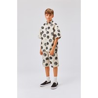 Avart is a pair of shorts with a print of peace signs and smiley faces. The shorts have an elastic waist and side pockets. Wear the shorts with a matching Richie shirt.