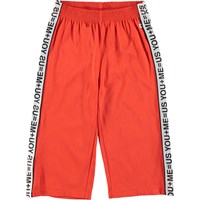 Molo is celebrating relationships and community in the 'Friendship' collection, which Aliecia is a part of. Aliecia is a pair of red culottes with sporty references. They have a white tape on the side of the legs with the words 'you, me, us'.