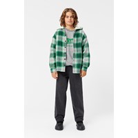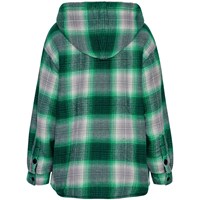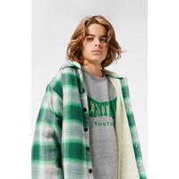 Checked overshirt in green and grey shades in a soft cotton blend. The overshirt has a loose fit, a hood, a button closure, long sleeves with cuffs and buttons. It has a comfortable, light teddy lining, making it comfortable to wear and ideal for transitional periods or as an extra layer on cooler days.