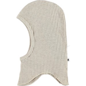 Beige baby ski mask in a rib quality.