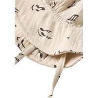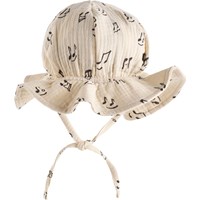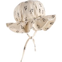 Cream-coloured sun hat for the little ones made of soft, organic cotton muslin with a music print. It is light and airy with a brim and ties to keep it in place.