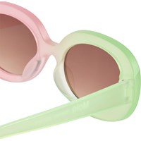 Oval sunglasses in green and pink with tinted lenses and satin finish. The UV protection category 2 blocks 57-82% of the sun's harmful rays. Perfect for days with light cloud cover or mild sun. Suitable for the age group 7 to 16 years.