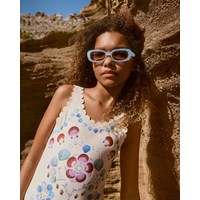 Oval sunglasses in light blue with tinted lenses and glossy finish. The UV protection category 2 blocks 57-82% of the sun's harmful rays. Perfect for days with light cloud cover or mild sun. Suitable for the age group 7 to 16 years.