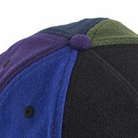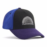 Multicoloured cap in woven wool quality. The cap has five panels in different colours, embroidery on the front with the text 'Humankind' and a slightly curved brim. It can be adjusted at the back.