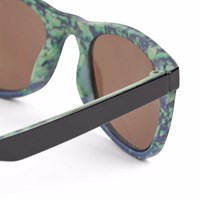 Classic sunglasses in black with green and blue splashes, tinted lenses, glossy finish, and 100% UV protection. Suitable for ages 7 to 16.
