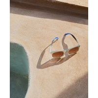 Classic sunglasses in white and blue shades with tinted lenses and a satin finish. The UV category 3 blocks 82-92% of the sun's harmful UV rays. Suitable for sunny days requiring effective sun protection. Fits the age group 7 to 16 years.