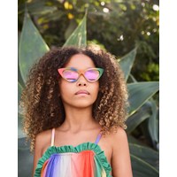 Multicoloured cat eye sunglasses in multiple colours with tinted lenses, satin finish, and 100% UV protection. Suitable for ages 7 to 16.