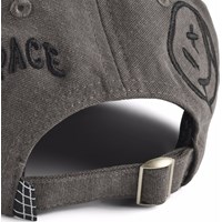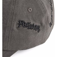 Grey cap in cotton blend. The cap has a washed denim look, black embroideries and a slightly curved brim. It can be adjusted at the back.