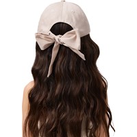 Classic cap with a twist – cream-coloured with bow detail at the back. It has a slightly curved brim and adjustable closure at the back. Recommended sizes: S/M = 53 cm, M/L = 56 cm.