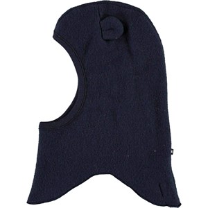 Blue ski mask in 100% Merino wool with sewn on ears. The ski mask keeps the neck and shoulders toasty warm.