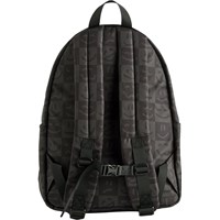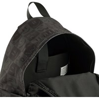 Black and grey backpack with a check pattern. It has a padded pocket for a computer or tablet, a zipped pocket at the front, bottle pockets on the sides, and padded straps. The adjustable chest strap and shoulder straps ensures good comfort and weight distribution. Dimensions: 30 x 17 x 42. Volume: 21L.