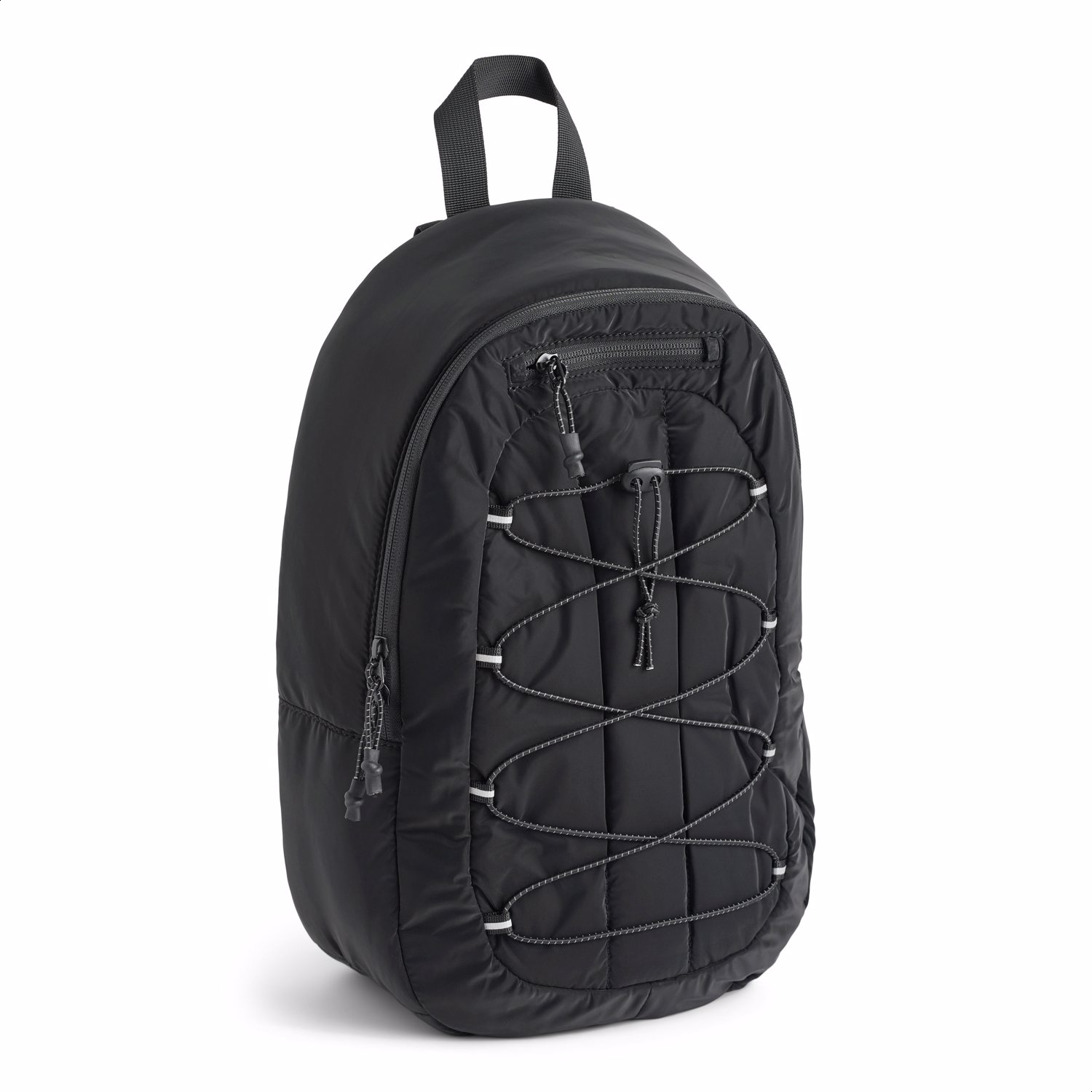 Black, practical and spacious backpack with padded shoulder straps for extra comfort. The backpack offers plenty of storage space, including a padded compartment that protects your laptop or tablet. The front features an elastic bungee cord system – perfect for quickly stashing a jacket or gym top. Ideal for study, work or everyday use. It also includes an adjustable chest strap for even weight distribution. The backpack measures 28 x 15 x 40.5 cm.