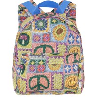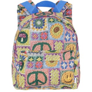 Backpack in colourful crochet print. This backpack is perfect for little adventurers aged 3-6 years, with a main compartment and a practical zippered front pocket. The bag features padded back and shoulder straps and an adjustable chest strap for optimal comfort. It is ideal as a preschool bag and can grow with the child thanks to the adjustable straps. Dimensions: 26 x 10 x 30 cm. Volume: 6.5L.
