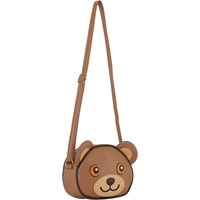 Brown crossbody bag with an adjustable shoulder strap and a cute teddy bear motif on the front.