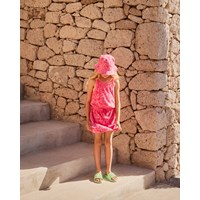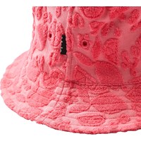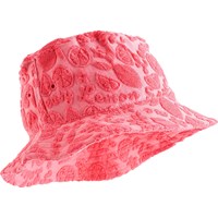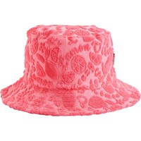 Pink bucket hat made of soft cotton terry with a citrus pattern. The hat has a regular fit with ventilation holes, is available in three different sizes, and is suitable for the beach and pool.