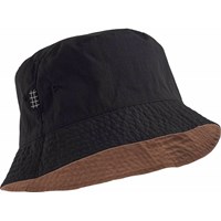 Reversible beige and black bucket hat in recycled nylon. The hat has a regular fit with air holes and is available in three different sizes. The material is lightweight and dries quickly.