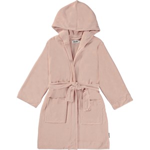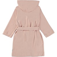 Wonderfully soft dressing gown in a lightweight, tightly woven, pink terry quality. It has two pockets, ties at the waist and has a large hood to keep the neck and head extra warm.
