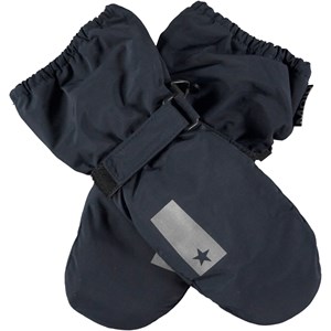 Blue winter mittens for really cold days. There is a black rubber coating on the inside of the palms and on the thumbs for easy gripping. The mittens are great for all kinds of weather and perfect for ski trips. The colours and prints of these mittens match Molo's outerwear. On this model, the shaft is a bit longer than Mitzy, so there is no gap between the mittens and the jacket sleeves. Size 1-2 years has a zipper in the cuff instead of the Velcro strap.