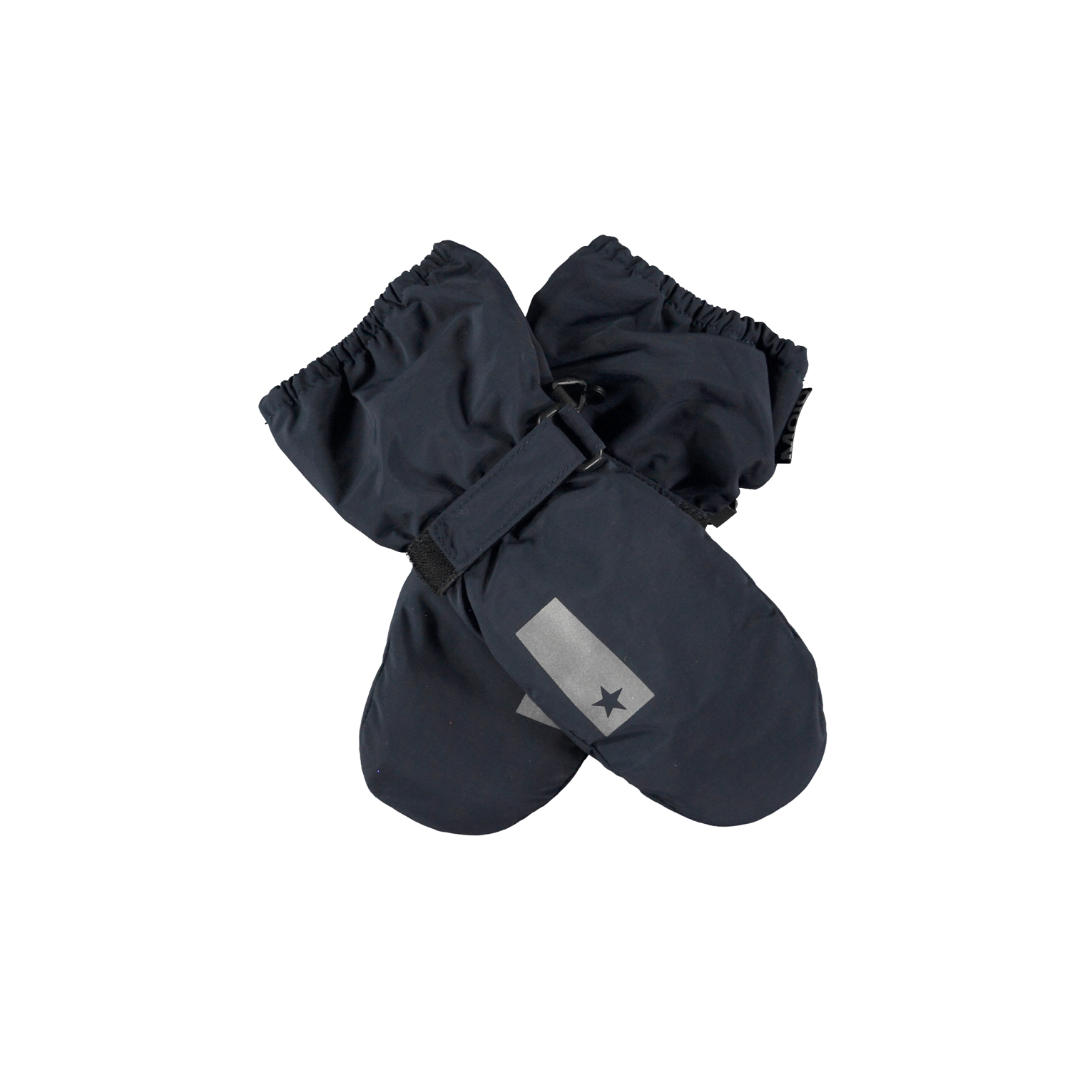 Blue winter mittens for really cold days. There is a black rubber coating on the inside of the palms and on the thumbs for easy gripping. The mittens are great for all kinds of weather and perfect for ski trips. The colours and prints of these mittens match Molo's outerwear. On this model, the shaft is a bit longer than Mitzy, so there is no gap between the mittens and the jacket sleeves. Size 1-2 years has a zipper in the cuff instead of the Velcro strap.