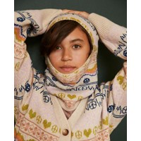 Patterned balaclava in a warm wool blend. It matches the Gilly knit.