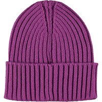 Purple, cable knit hat in a wool blend with a roll up and Molo''s logo on the front.