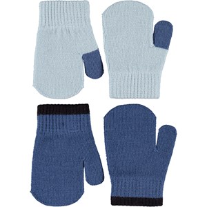 2-pack knitted mittens for the little ones in blue shades. The mittens have a ribbed cuff around the wrist that ensures they stay in place and do not slide off the hand.