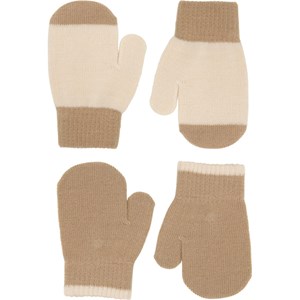 2-pack of knitted mittens for babies and toddlers in off-white and beige. The mittens have a ribbed cuff around the wrist, ensuring that they stay in place and don't slip off the hand.