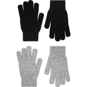 2-pack of knitted gloves in black and grey. The gloves have a ribbed cuff around the wrist, making them comfortable to wear and preventing them from slipping off the hand.
