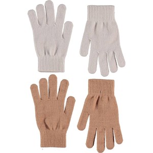 Two pair knit gloves. One pair in rose, while the other is in off white.