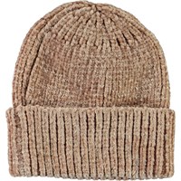 light brown, fuzzy and soft hat in a gorgeous chenille knit with large roll up.