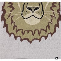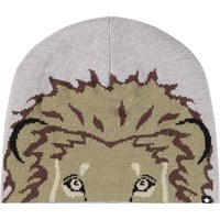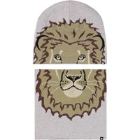 Grey beanie and infinity scarf in a wool blend with lion motif.