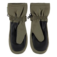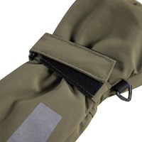 Green, waterproof and breathable mittens with fleece lining and 3M™ Thinsulate™ insulation. The mittens have a reflector on the front, as well as elastic and adjustable velcro at the wrist.