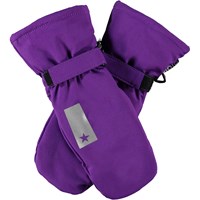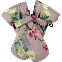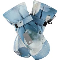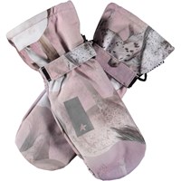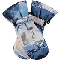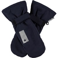 Dark blue waterproof and breathable mittens with dinosaur print and 3M™ Thinsulate™ insulation. The mittens have a reflective strip on the front and elastic and adjustable Velcro at the wrist. Features: Water-repellent PFC-free impregnation Water column pressure: 15,000 mm. Breathability: 15,000 g/m2/24h 3M™ Thinsulate™ insulation Please note, size 1-2 years has a zip in the cuff instead of Velcro closure.