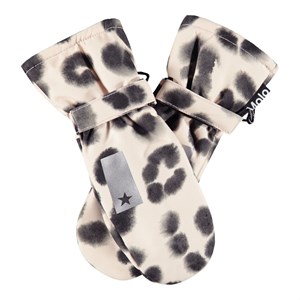 Snow leopard-spotted, waterproof and breathable mittens with fleece lining and 3M™ Thinsulate™ insulation. The mittens have a reflector on the front, as well as elastic and adjustable velcro at the wrist.