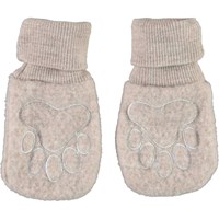Beige baby mittens in 100% Merino wool with a rib at the wrists.