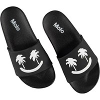 Molo's Zhappy sandals are a must in the summer heat when you need to give your toes some air. These slippers are in black with fun white palm smiley.