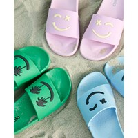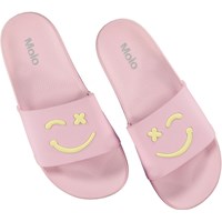Molo's Zhappy sandals are a must-have for the summer heat when your toes need some air. These slippers are in pink with yellow smiley faces. The sandals have an elastic heel-strap in sizes 23/24 and 25/26