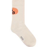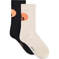 2-pack of cotton socks. The pack contains one pair of black and one pair of cream-coloured socks with an orange basketball motif. The socks have a ribbed shaft and elastic at the top, and they are wonderfully soft to wear.