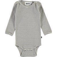Fair is a long sleeve baby bodysuit in rib with delicate, narrow stripes in brown and white. It has easy snap closure at the neck and at the crotch.