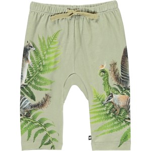 Sabb is a pair of roomy baby trousers with the print 'Fern Climbers'. They have ties at the waist.