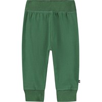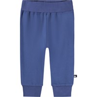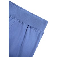 Blue pants for the little ones made of organic cotton jersey. The pants have a wide elastic ribbed waistband and leg cuffs and visible stitching at the front. They are soft to wear and provide plenty of room to move.