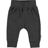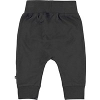 Sammy is a pair of black baby trousers. They have wide elastic rib at the waist and legs as well as visible stitching on the front to give them a sweatpants look.