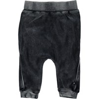 Sido is a pair of dark grey, velour baby sweatpants. Sido has rib at the waist and legs.