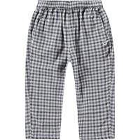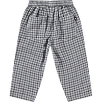 Plaid trousers for the little ones made of organic cotton. The trousers have a loose fit, front and back pockets, and an elastic waistband, making them easy to put on and take off. They are lightweight and airy, providing plenty of mobility. There is also a small embroidered smiling face by the pocket. Pair the trousers with a matching shirt for a complete and comfortable set.