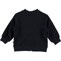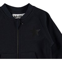 Daylo is a dark blue baby sweatshirt with a zip closure. It has a star on the front and a pouch pocket.