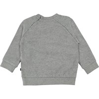 Disco is a baby sweatshirt in grey with a print of a bee and the text 'Bee nice'. It has a snap closure in the back of the neck.