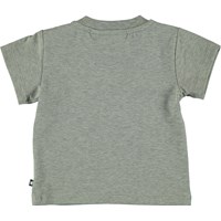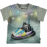 Even bulldogs love Molo's "Bumper Car" print on the Emilio t-shirt. It is a cotton t-shirt with a button closure on the shoulder.